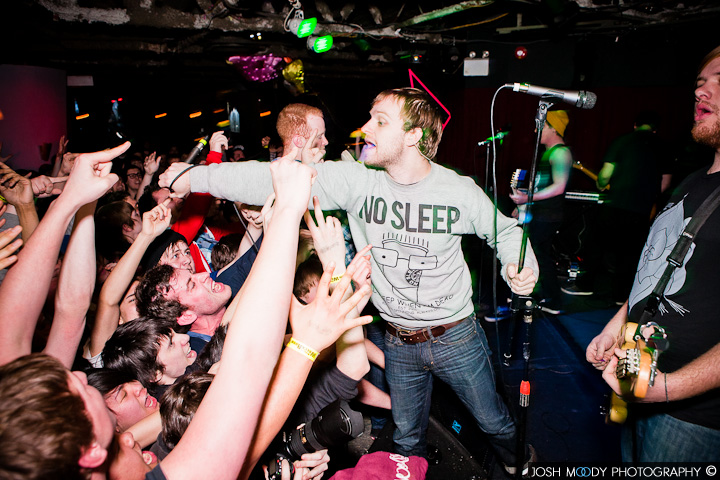 Story: Everyone in the place knew the reason for assembly. To show that pop punk has yet to take a back seat to the over populating scene of hardcore bands. This was kick started when Handguns took the stage, tearing a hole in the crowd so The Wonder Years could follow and destroy it. And that, they did. Awesome show dudes! Soupy, feel better. Notice a bucket present in some photos; this was in case dear Soupy pucked on stage due to illness!