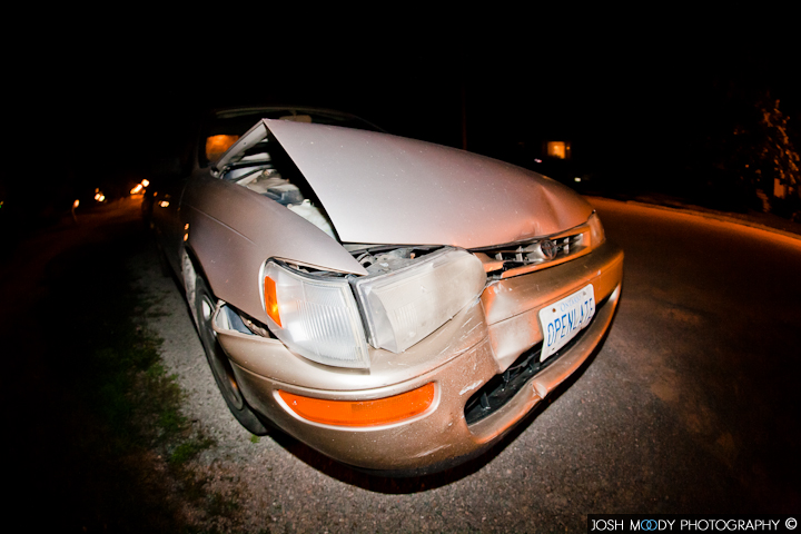 August 12th, 2010 was a day unexpected. After a day of a gruelling work, I left to enjoy the company of friends to cheer my sorry ass up. Few hours later, I finally began to feel a bit better. I drove my car down Lakeshore Rd in Port Colborne, around 8PM. The sun was ready to set, and the darkness of night began to poke its sly head. And here is where life decided to rear its ugly, painfully fisting side. A young girl a few months into a G1 License, and her father were driving the opposite way on the same road. In only split seconds, the young girl turned directly in front of my vehicle, causing me to screech into her car, which was accelerating into mine. The force of the hit didn’t hurt anyone and no airbags were deployed. The car though, didn’t make it out so well. My drive (literally) was now gone. Life had come full circle once again.